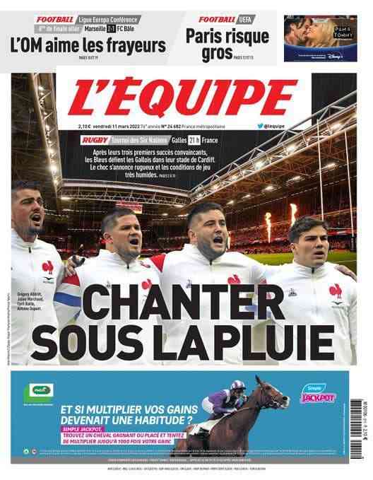 La rassegna stampa di Calciomercato.it vi propone i titoli principali sulla prima pagina di oggi, venerdì 11 marzo 2022, de ‘L’Equipe’:
