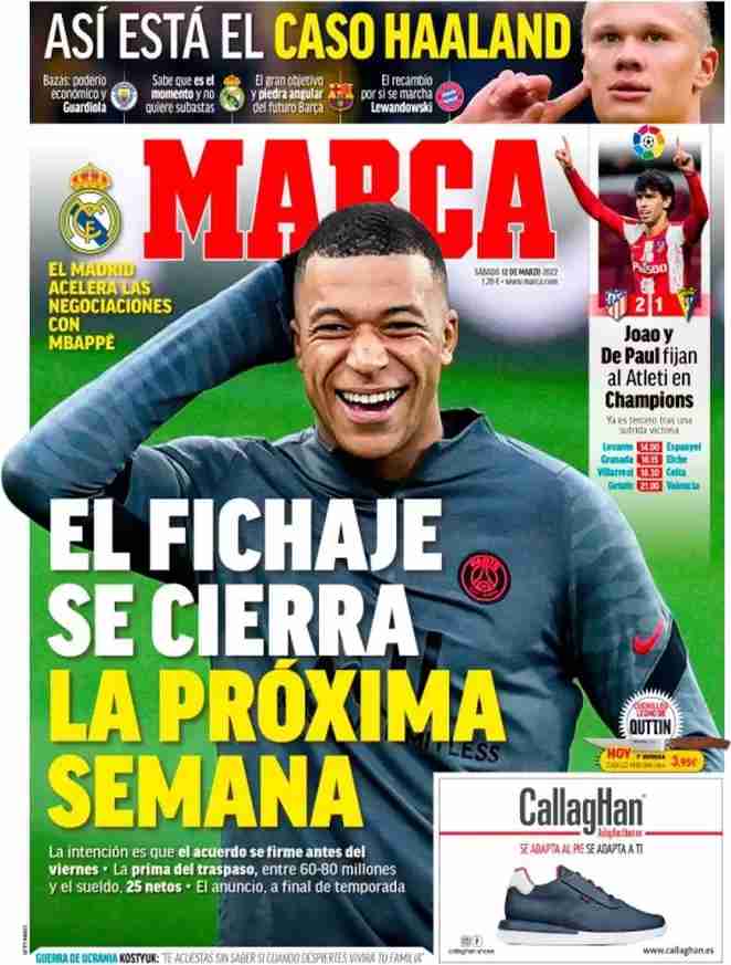La rassegna stampa di Calciomercato.it vi propone i titoli principali sulla prima pagina di oggi, sabato 12 marzo 2022, del ‘Marca’: