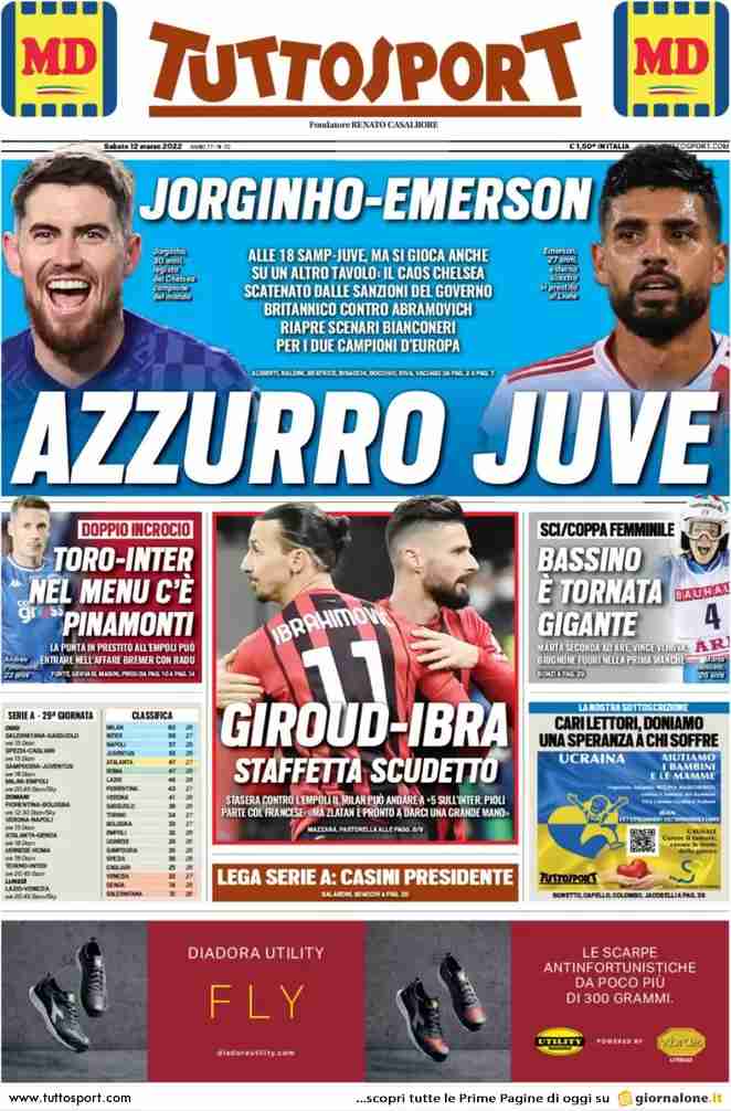 La rassegna stampa di Calciomercato.it vi propone i titoli principali sulla prima pagina di oggi, sabato 12 marzo 2022, di ‘TuttoSport’: