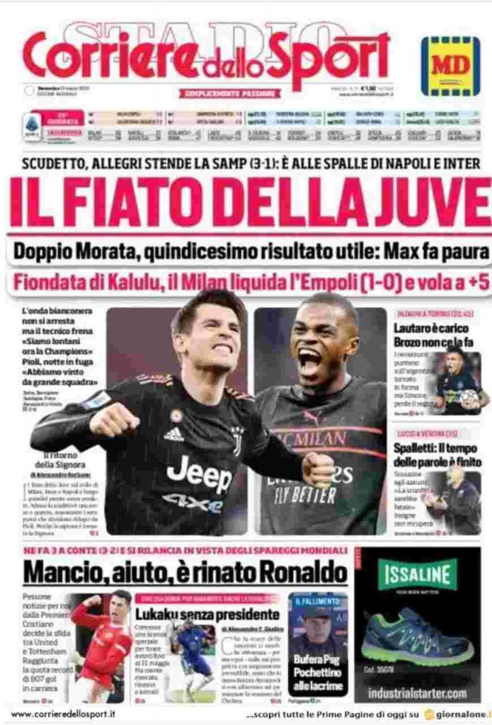 La rassegna stampa di Calciomercato.it vi propone i titoli principali sulla prima pagina di oggi, domenica 13 marzo 2022, del ‘Corriere dello Sport’: