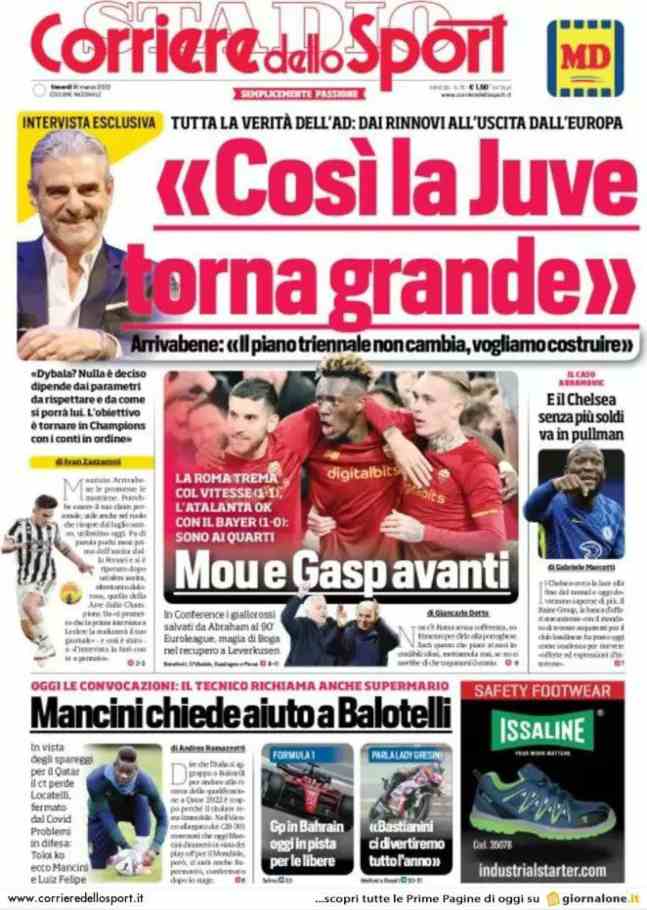 La rassegna stampa di Calciomercato.it vi propone i titoli principali sulla prima pagina di oggi, venerdì 18 marzo 2022, del ‘Corriere dello Sport’: