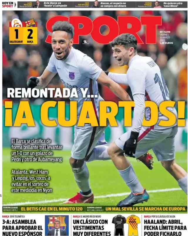 I titoli principali sulla prima pagina del quotidiano sportivo, Sport