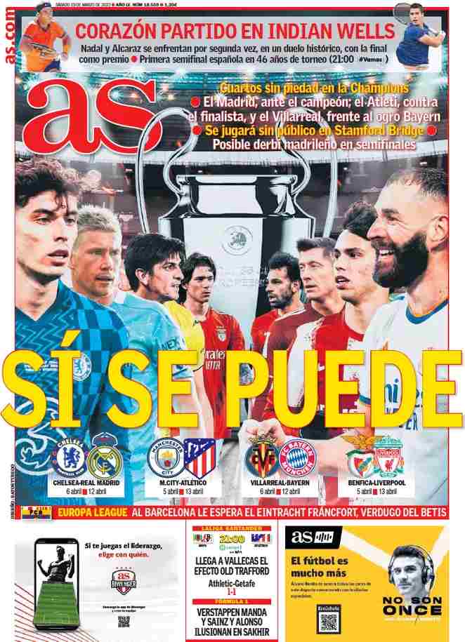I titoli principali sulla prima pagina del quotidiano sportivo, As