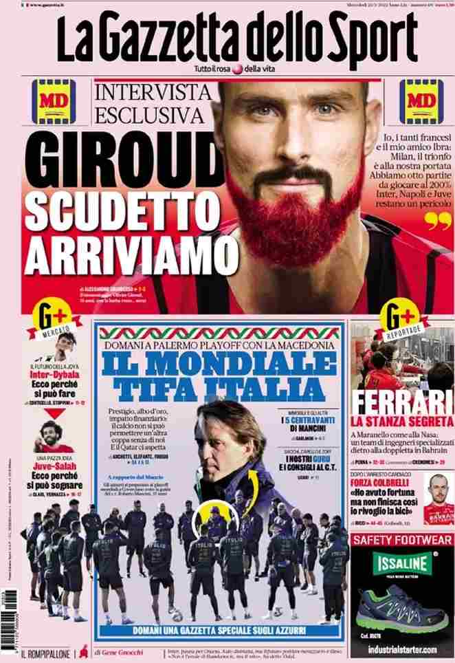 La rassegna stampa di Calciomercato.it vi propone i titoli principali sulla prima pagina di oggi, mercoledì 23 marzo 2022, de ‘La Gazzetta dello Sport’: