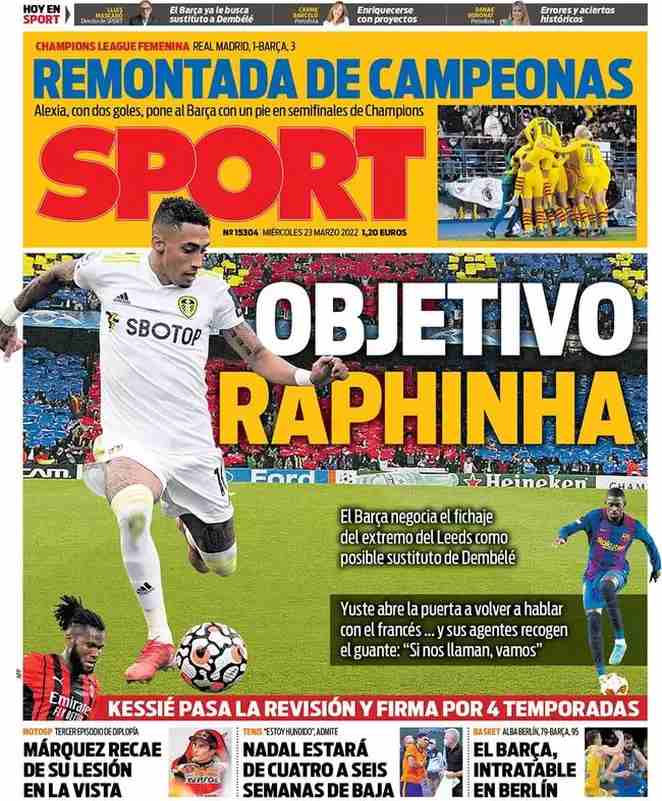 La rassegna stampa di Calciomercato.it vi propone i titoli principali sulla prima pagina di oggi, mercoledì 23 marzo 2022, di ‘Sport’: