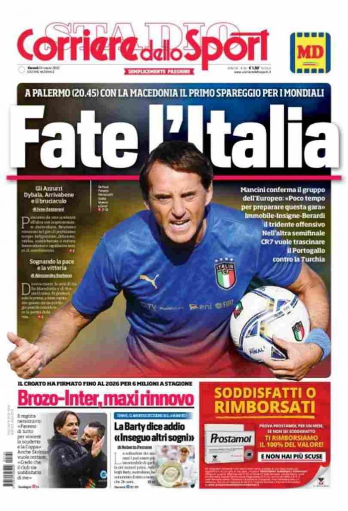 La rassegna stampa di Calciomercato.it vi propone i titoli principali sulla prima pagina di oggi, giovedì 24 marzo 2022, del ‘Corriere dello Sport’: