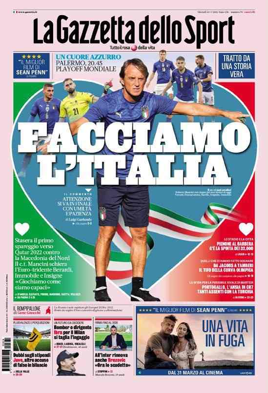 La rassegna stampa di Calciomercato.it vi propone i titoli principali sulla prima pagina di oggi, giovedì 24 marzo 2022, de ‘La Gazzetta dello Sport’: