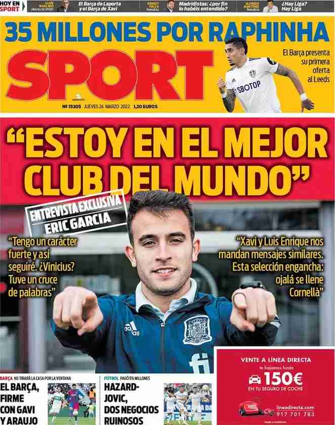 I titoli principali sulla prima pagina del quotidiano sportivo, Sport