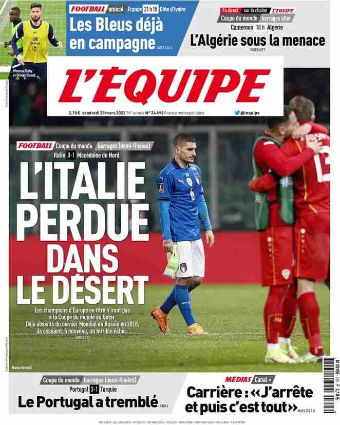 La rassegna stampa di Calciomercato.it vi propone i titoli principali sulla prima pagina di oggi, venerdì 25 marzo 2022, de ‘L’Equipe’: