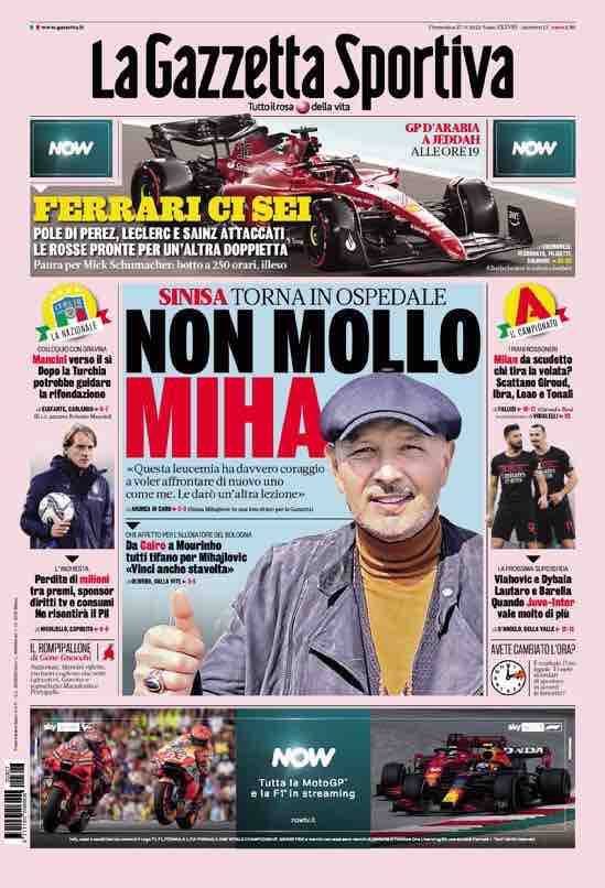 La rassegna stampa di Calciomercato.it vi propone i titoli principali sulla prima pagina di oggi, domenica 27 marzo 2022, de ‘La Gazzetta dello Sport’:
