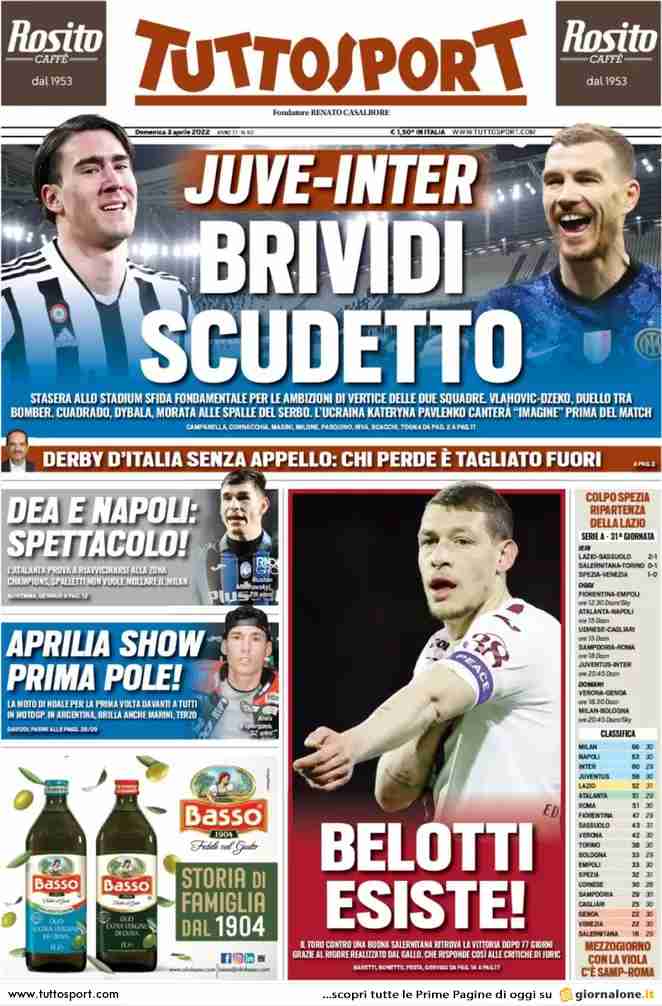 La rassegna stampa di Calciomercato.it vi propone i titoli principali sulla prima pagina di oggi, domenica 3 aprile 2022, di ‘Tuttosport’: