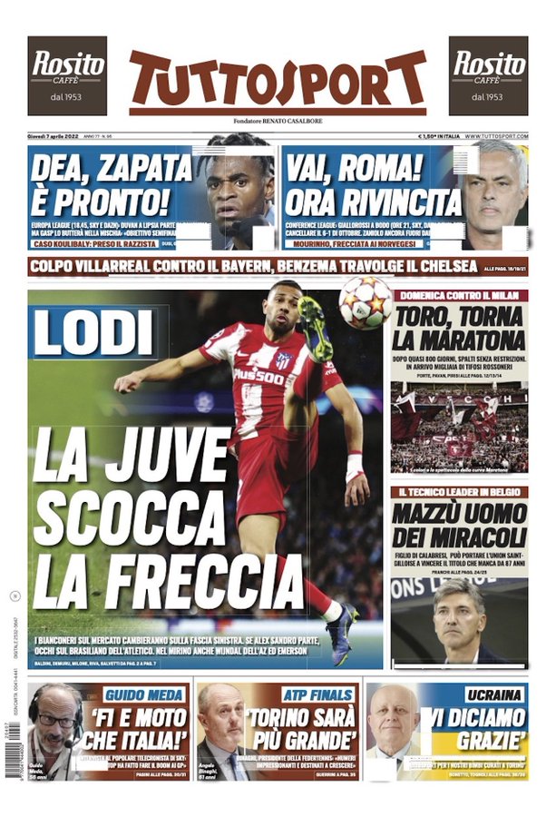 La rassegna stampa di Calciomercato.it vi propone i titoli principali sulla prima pagina di oggi, giovedì 7 aprile 2022, di ‘Tuttosport’: