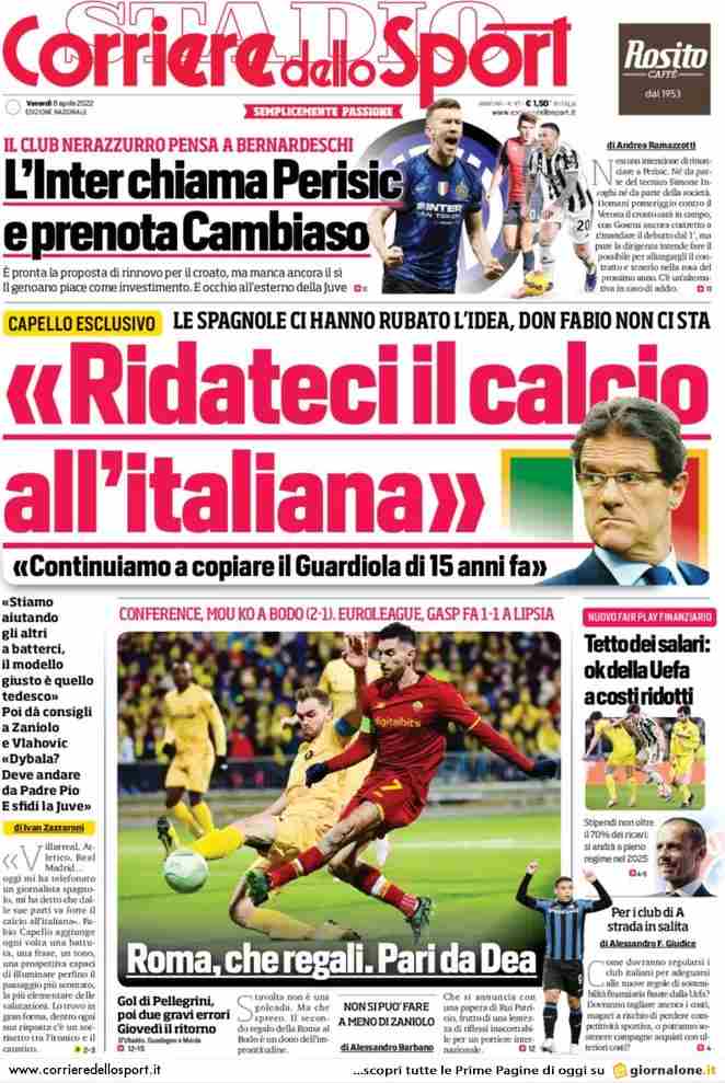 La rassegna stampa di Calciomercato.it vi propone i titoli principali sulla prima pagina di oggi, venerdì 8 aprile 2022, del ‘Corriere dello Sport’: