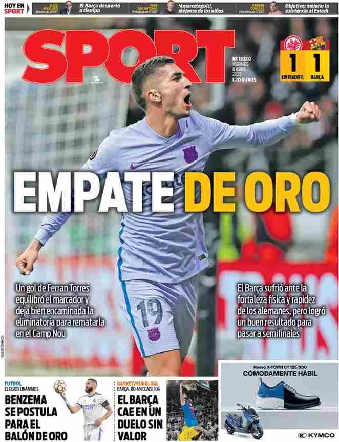 I titoli principali sulla prima pagina di oggi del quotidiano sportivo spagnolo, ‘Sport’
