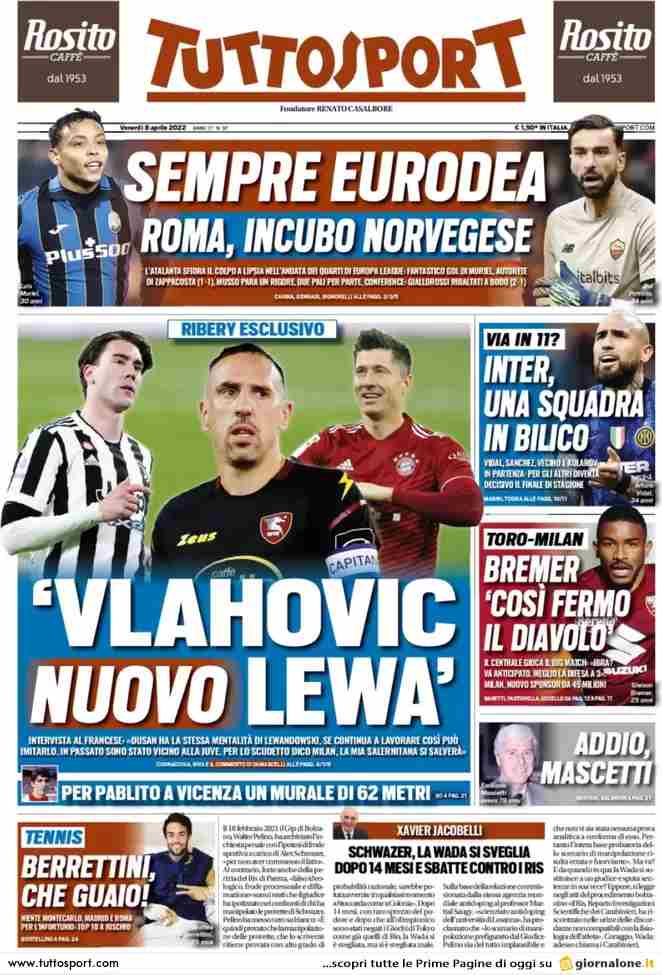 La rassegna stampa di Calciomercato.it vi propone i titoli principali sulla prima pagina di oggi, venerdì 8 aprile 2022, di ‘Tuttosport’: