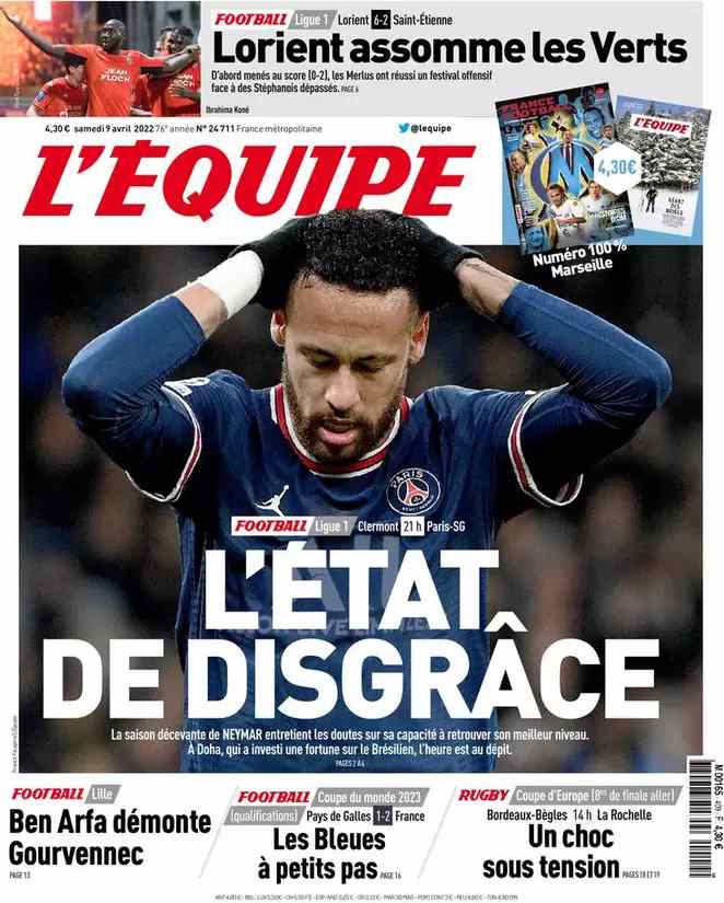 La rassegna stampa di Calciomercato.it vi propone i titoli principali sulla prima pagina di oggi, sabato 9 aprile 2022, de ‘L’Equipe’: