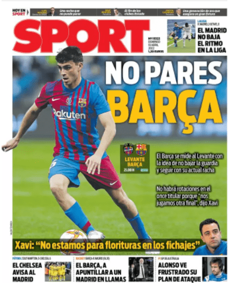 I titoli principali sulla prima pagina di oggi del quotidiano sportivo spagnolo, ‘Sport’