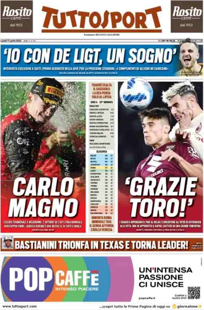 La rassegna stampa di Calciomercato.it vi propone i titoli principali sulla prima pagina di oggi, lunedì 11 aprile 2022, di ‘Tuttosport’: