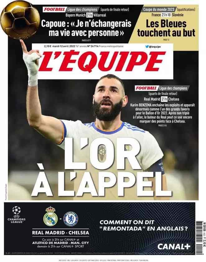 La rassegna stampa di Calciomercato.it vi propone i titoli principali sulla prima pagina di oggi, martedì 12 aprile 2022, de ‘L’Equipe’: