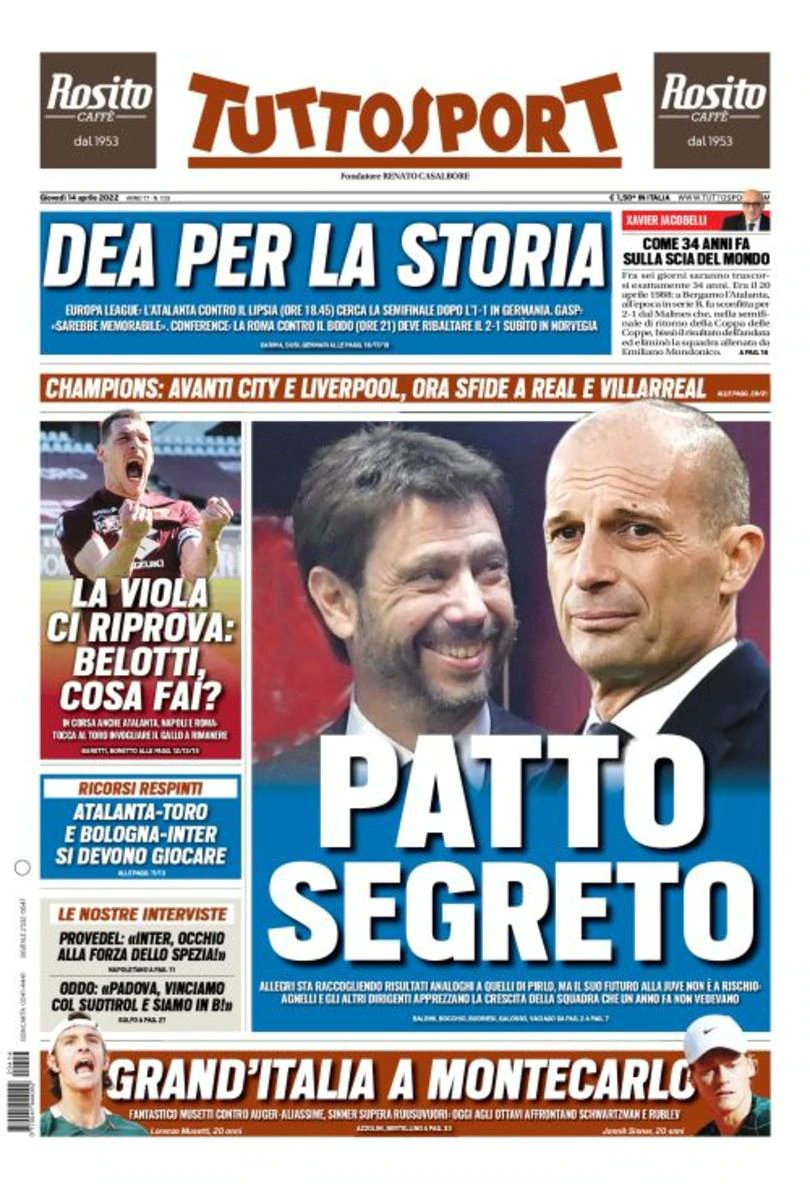La rassegna stampa di Calciomercato.it vi propone i titoli principali sulla prima pagina di oggi, giovedì 14 aprile 2022, di ‘Tuttosport’: