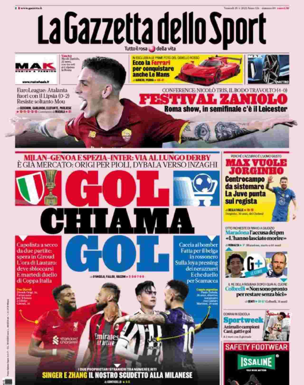 La rassegna stampa di Calciomercato.it vi propone i titoli principali sulla prima pagina di oggi, venerdì 15 aprile 2022, de ‘La Gazzetta dello Sport’: