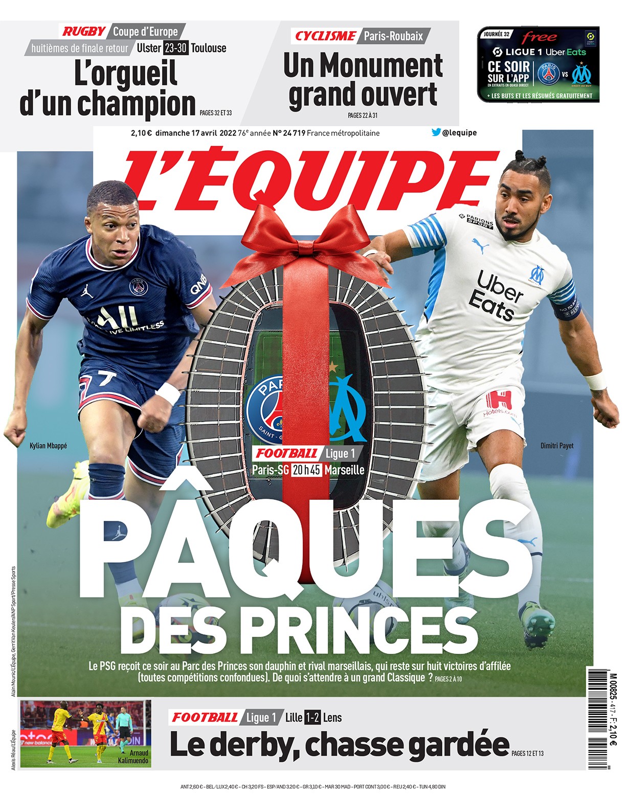La rassegna stampa di Calciomercato.it vi propone i titoli principali sulla prima pagina di oggi, domenica 17 aprile 2022, de ‘L’Equipe’: