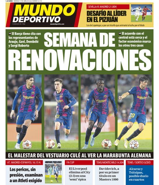 La rassegna stampa di Calciomercato.it vi propone i titoli principali sulla prima pagina di oggi, domenica 17 aprile 2022, del Mundo Deportivo: