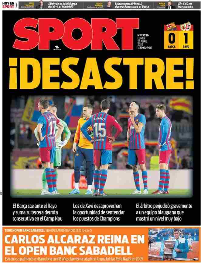 I titoli principali sulla prima pagina di oggi del quotidiano sportivo spagnolo, ‘Sport’