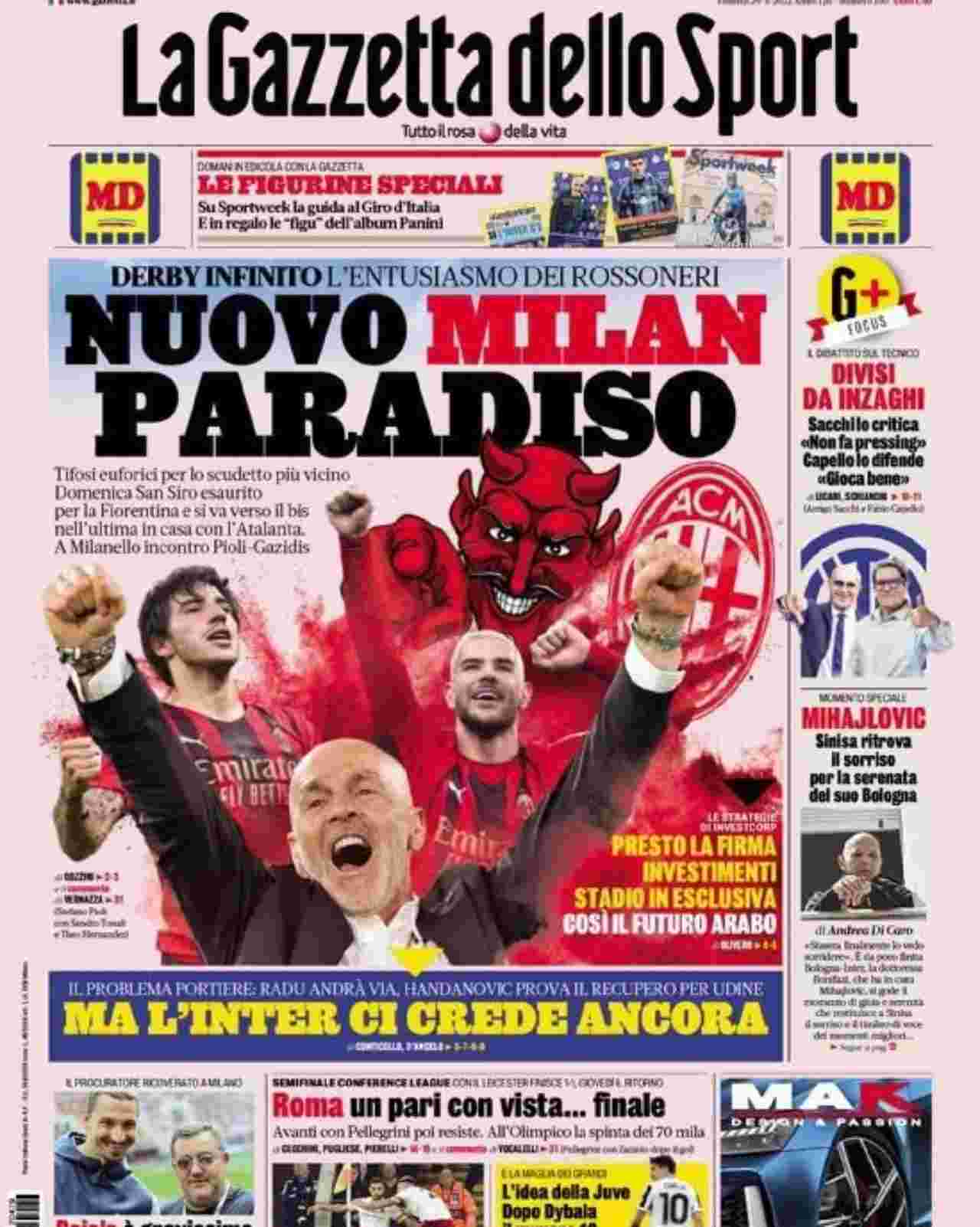 La rassegna stampa di Calciomercato.it vi propone i titoli principali sulla prima pagina di oggi, venerdì 29 aprile 2022, de ‘La Gazzetta dello Sport’.