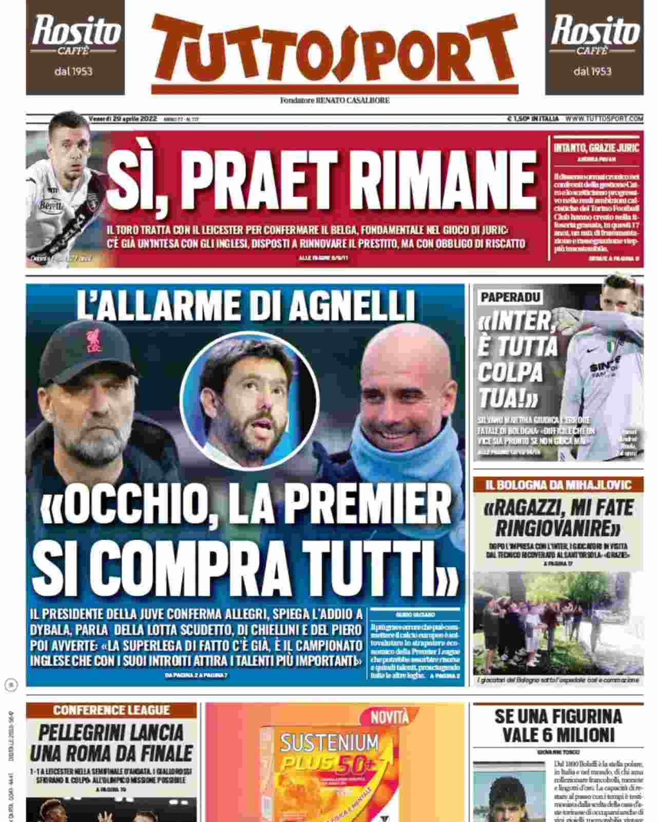 La rassegna stampa di Calciomercato.it vi propone i titoli principali sulla prima pagina di oggi, venerdì 29 aprile 2022, di ‘Tuttosport’.