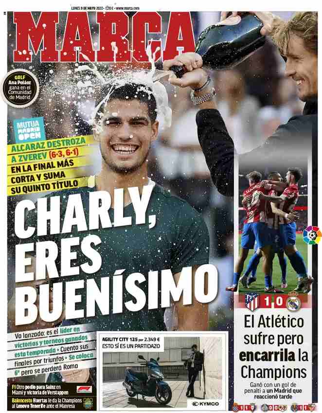 I titoli principali sulla prima pagina del quotidiano sportivo, Marca