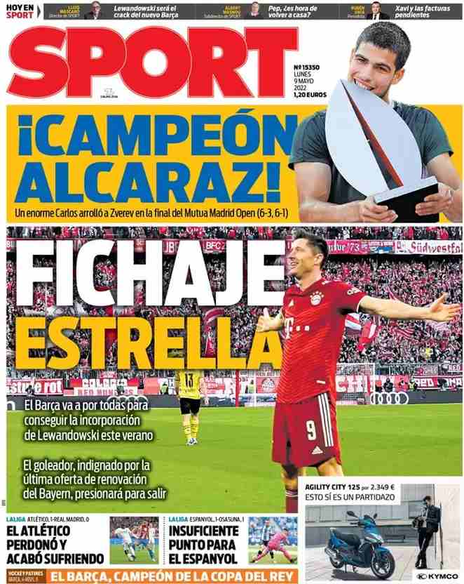 I titoli principali sulla prima pagina di oggi del quotidiano sportivo spagnolo, ‘Sport’