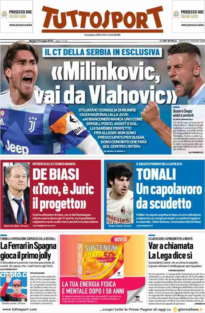 La rassegna stampa di Calciomercato.it vi propone i titoli principali sulla prima pagina di oggi, martedì 10 maggio 2022, di ‘Tuttosport’: