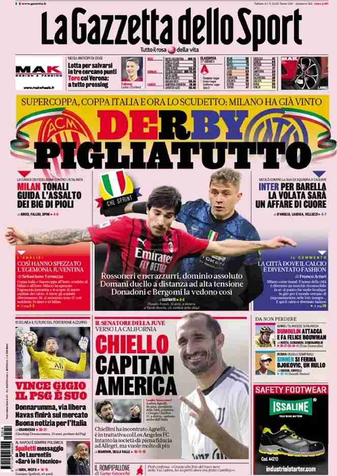 La rassegna stampa di Calciomercato.it vi propone i titoli principali sulla prima pagina di oggi, sabato 14 maggio 2022, de ‘La Gazzetta dello Sport’: