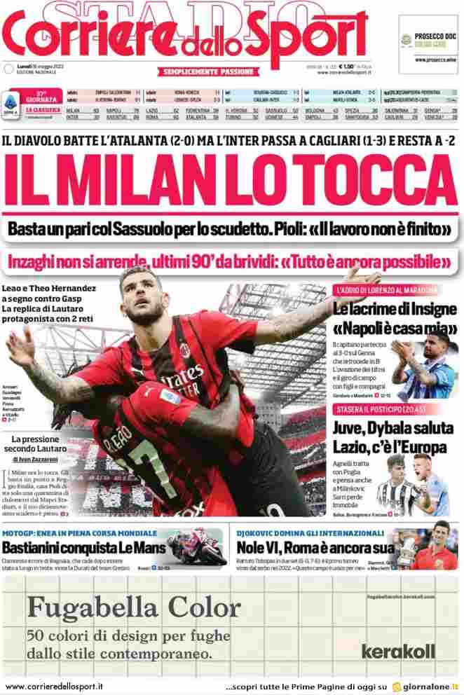 La rassegna stampa di Calciomercato.it vi propone i titoli principali sulla prima pagina di oggi, lunedì 16 maggio 2022, del ‘Corriere dello Sport’: