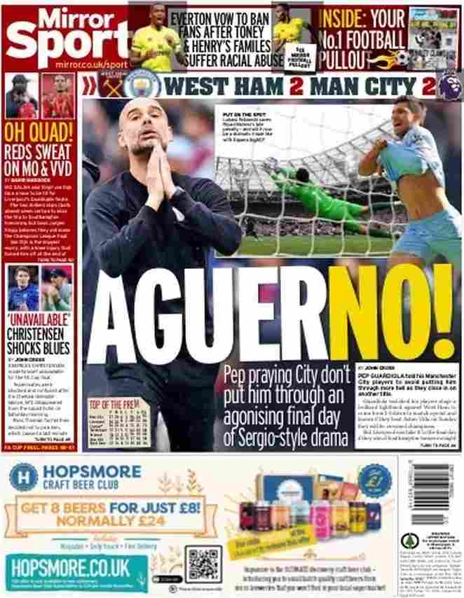 I titoli principali sulla prima pagina del quotidiano sportivo inglese, Mirror