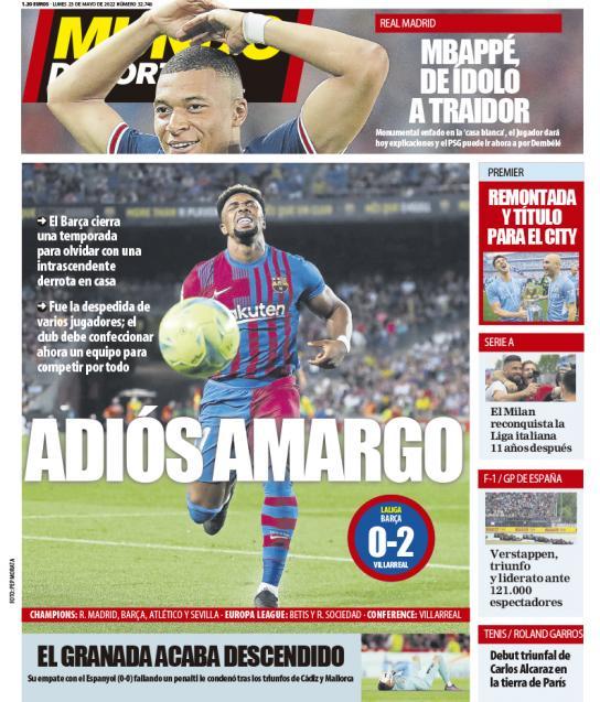 La rassegna stampa di Calciomercato.it vi propone i titoli principali sulla prima pagina di oggi, lunedì 23 maggio, del ‘Mundo Deportivo’.