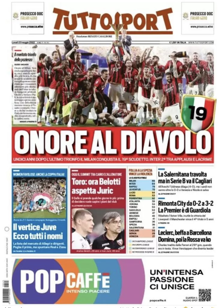 La rassegna stampa di Calciomercato.it vi propone i titoli principali sulla prima pagina di oggi, lunedì 23 maggio, di ‘Tuttosport’: