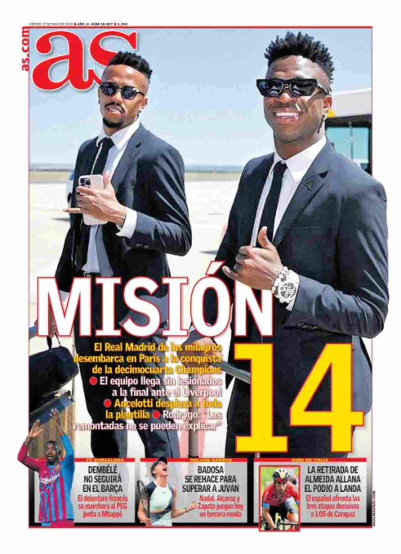 La rassegna stampa di Calciomercato.it vi propone i titoli principali sulla prima pagina di oggi, venerdì 27 maggio 2022, di ‘AS’: