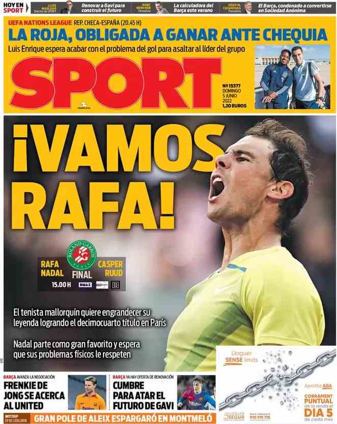 I titoli principali sulla prima pagina del quotidiano sportivo, Sport