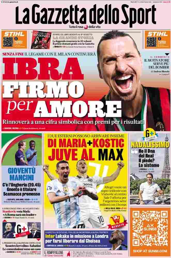 La rassegna stampa di Calciomercato.it vi propone i titoli principali sulla prima pagina di oggi, martedì 7 giugno 2022, de ‘La Gazzetta dello Sport’.