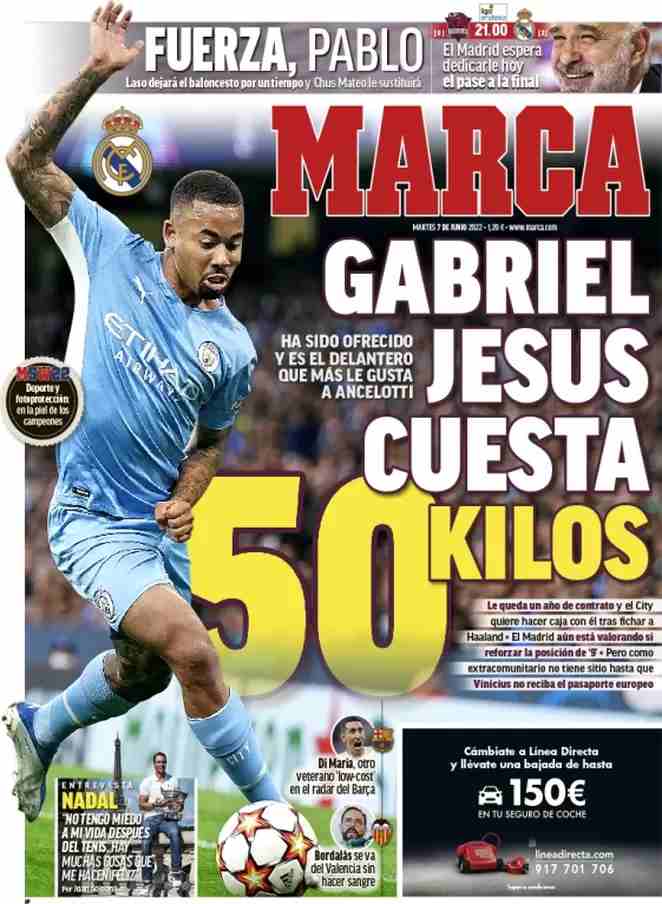 La rassegna stampa di Calciomercato.it vi propone i titoli principali sulla prima pagina di oggi, martedì 7 giugno 2022, di ‘Marca’: