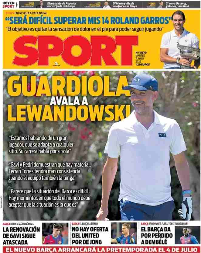 I titoli principali sulla prima pagina del quotidiano sportivo, Sport