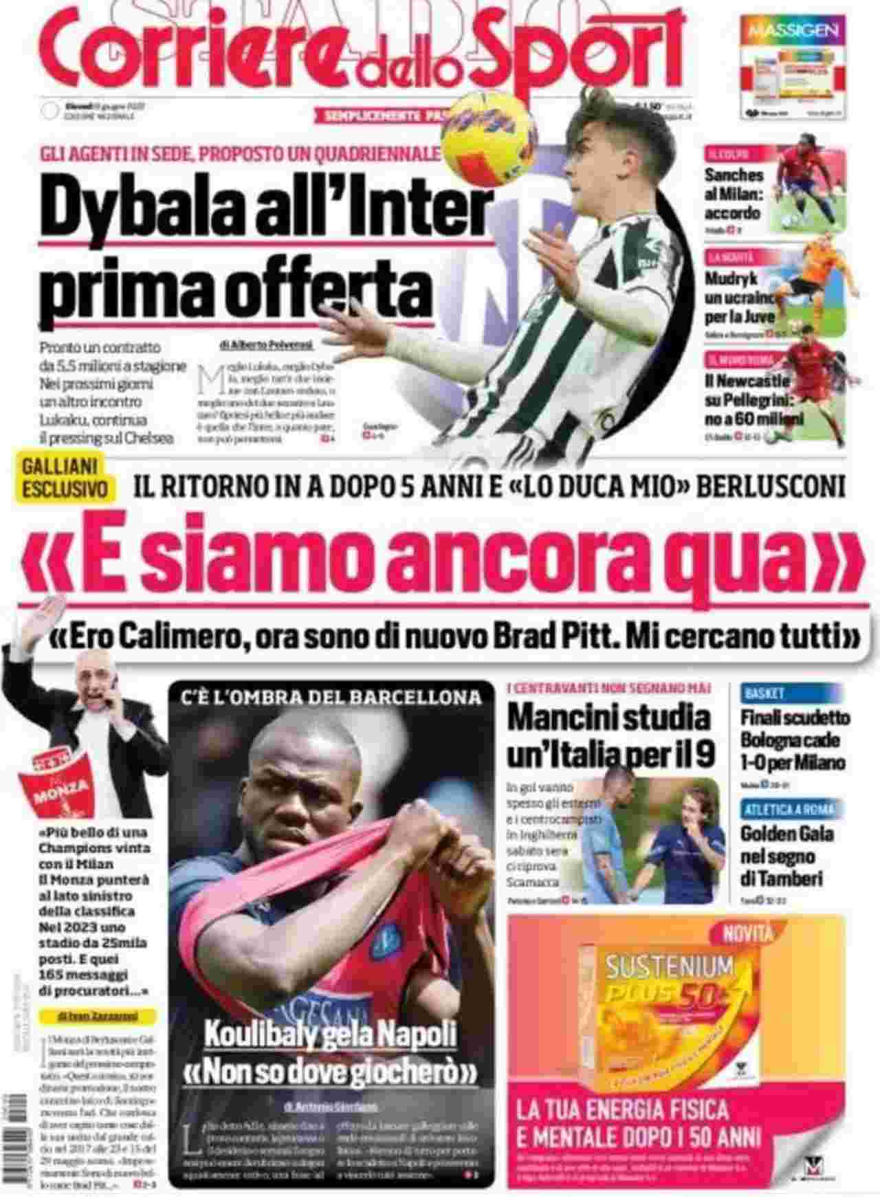 La rassegna stampa di Calciomercato.it vi propone i titoli principali sulla prima pagina di oggi, giovedì 9 giugno 2022, del ‘Corriere dello Sport’.