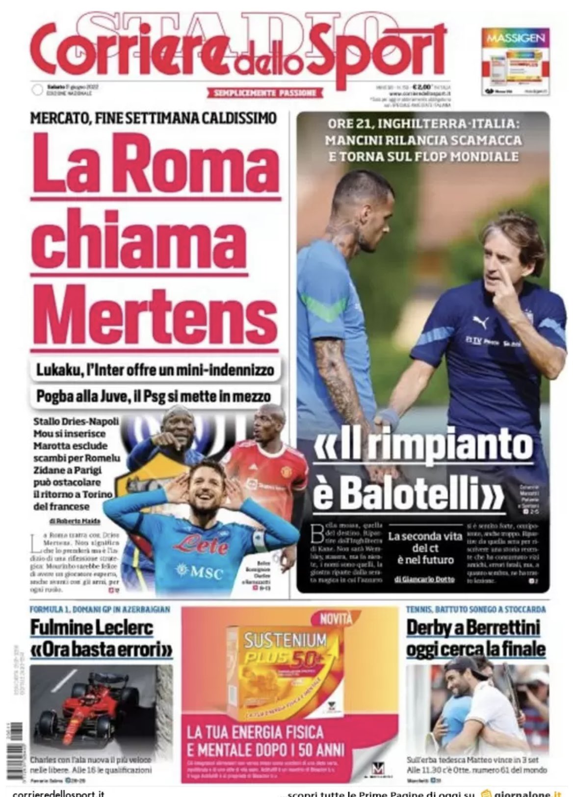 La rassegna stampa di Calciomercato.it vi propone i titoli principali sulla prima pagina di oggi, sabato 11 giugno 2022, del ‘Corriere dello Sport’.