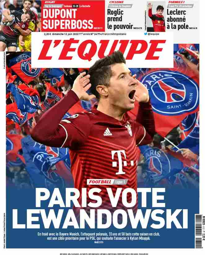La rassegna stampa di Calciomercato.it vi propone i titoli principali sulla prima pagina di oggi, domenica 12 giugno 2022, de ‘L’Equipe’.