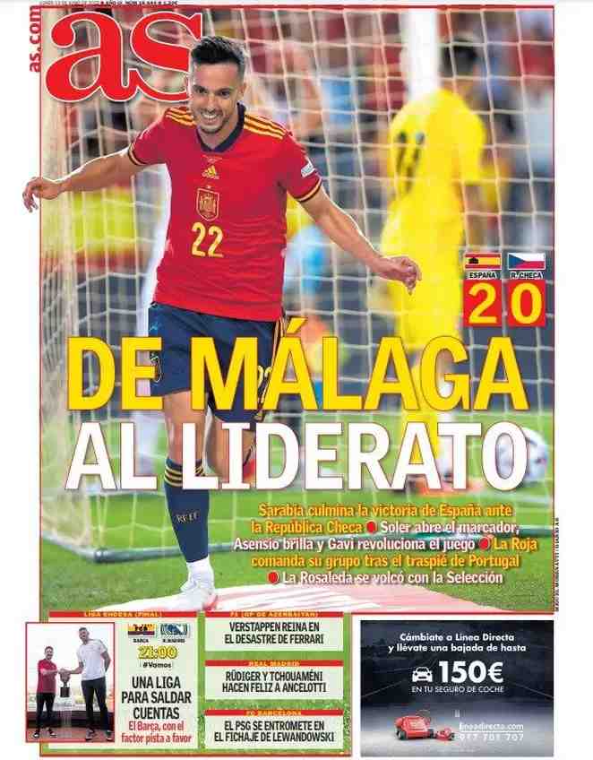 I titoli principali sulla prima pagina del quotidiano sportivo spagnolo, As