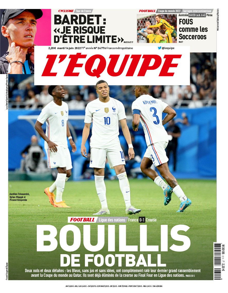 La rassegna stampa di Calciomercato.it vi propone i titoli principali sulla prima pagina di oggi, martedì 14 giugno 2022, de ‘L’Equipe’.