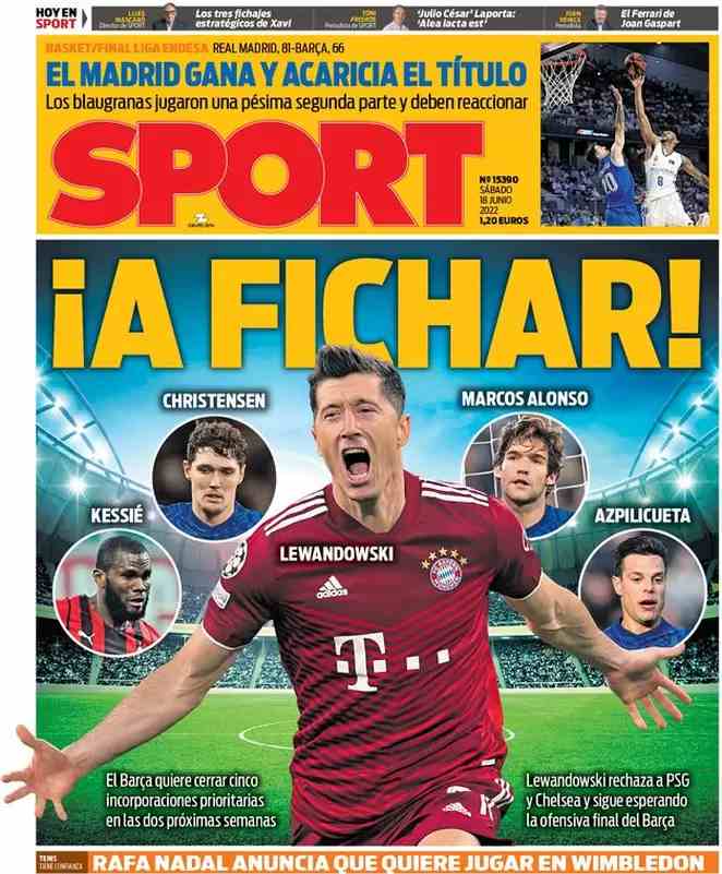I titoli principali sulla prima pagina del quotidiano sportivo, Sport
