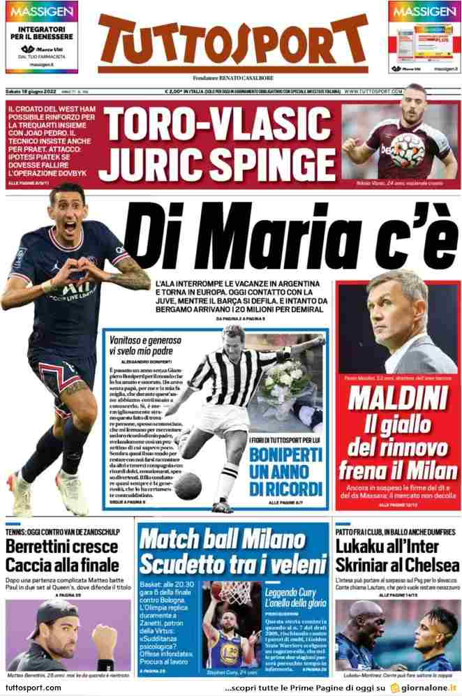 La rassegna stampa di Calciomercato.it vi propone i titoli principali sulla prima pagina di oggi, sabato 18 giugno 2022, di ‘Tuttosport’.